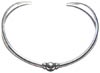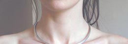 Nous avons imaginé une ligne de colliers rigides portant des pendentifs en pierre fine. Tous ces pendentifs sont démontables et interchangeables; ainsi le même collier peut être porté en ras de cou simple, avec juste sa bélière ou complet avec son pendentif.